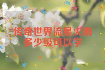 1,传奇世界几级可以学流星火雨43级开始学,45级可以达到中级,47级可以达到专家43级 2,传奇世界技能比较当然爆裂高了呀,基本250以上吧,看你装备,不过耗蓝很快,冰箭最垃圾流星火雨法师的超级群体攻击魔法可向特定范围施展,同时攻击多个目标,流星闪耀,火雨天降,给敌人造成巨大伤害绚丽的魔法效果。
