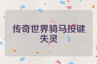 传奇世界骑马按键失灵SF09.cn版权所有 地址:https://www.sf09.cn/post/15267.html