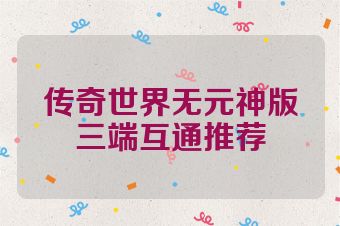 传奇世界无元神版三端互通推荐SF09.cn版权所有 地址:https://www.sf09.cn/post/17199.html