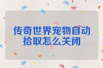 1、3,传奇世界2怎么关闭灵兽自动拾取不拣东西原因1灵兽不处于饱食状态21级以下初始灵兽不能拾取物品3设置灵兽拾取功能关闭你好游戏界面F12里面的物品栏设置一下就好例如物品名称 极品 贵重 拾取 显示离别钩V,前面极品贵重拾取打钩去掉仅代表个人观点,不喜勿;如果你想关闭自动拾取极品雪莲的功能,可以按F12进入内挂设置,找到“自动拾取”或“极品拾取”的相关设置,并将其关闭。