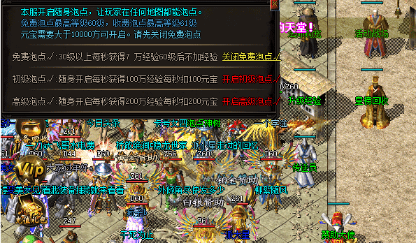咱们说完这个免费的,肯定也有收费泡点,这个相对来说,是象征性的收取一线元宝,这个元宝对于玩家来说,都可以拿的出来,我们只需要开启收费泡点,经验给的会更多。