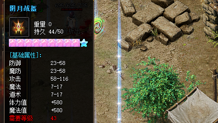如上游戏截图所示,这件装备显示是10颗星,星数量越高证明这件装备属性越好,在防御还有魔防上面是23-58点属性增加,在攻击上面是58-116点属性,在魔法还有道术上面是7-17点属性,在体力值还有魔法值上面+580点属性,在穿戴等级要求上面是43等级穿戴。