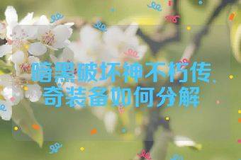 3、暗黑破坏神不朽传奇装备的处理方法主要有两种提取精华和分解装备一提取精华 用途游戏中的每个传奇装备都拥有独特的特殊词条,这些词条可以通过提取精华的方式,应用到其他装备上,从而提升其他装备的属性或效果操作玩家需要找到游戏中的NPC赛斯,选择“精华传承”选项,然后放入想要提取精华的传奇装备。