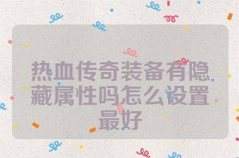 热血传奇装备有隐藏属性吗怎么设置最好SF09.cn版权所有 地址:https://www.sf09.cn/post/8478.html